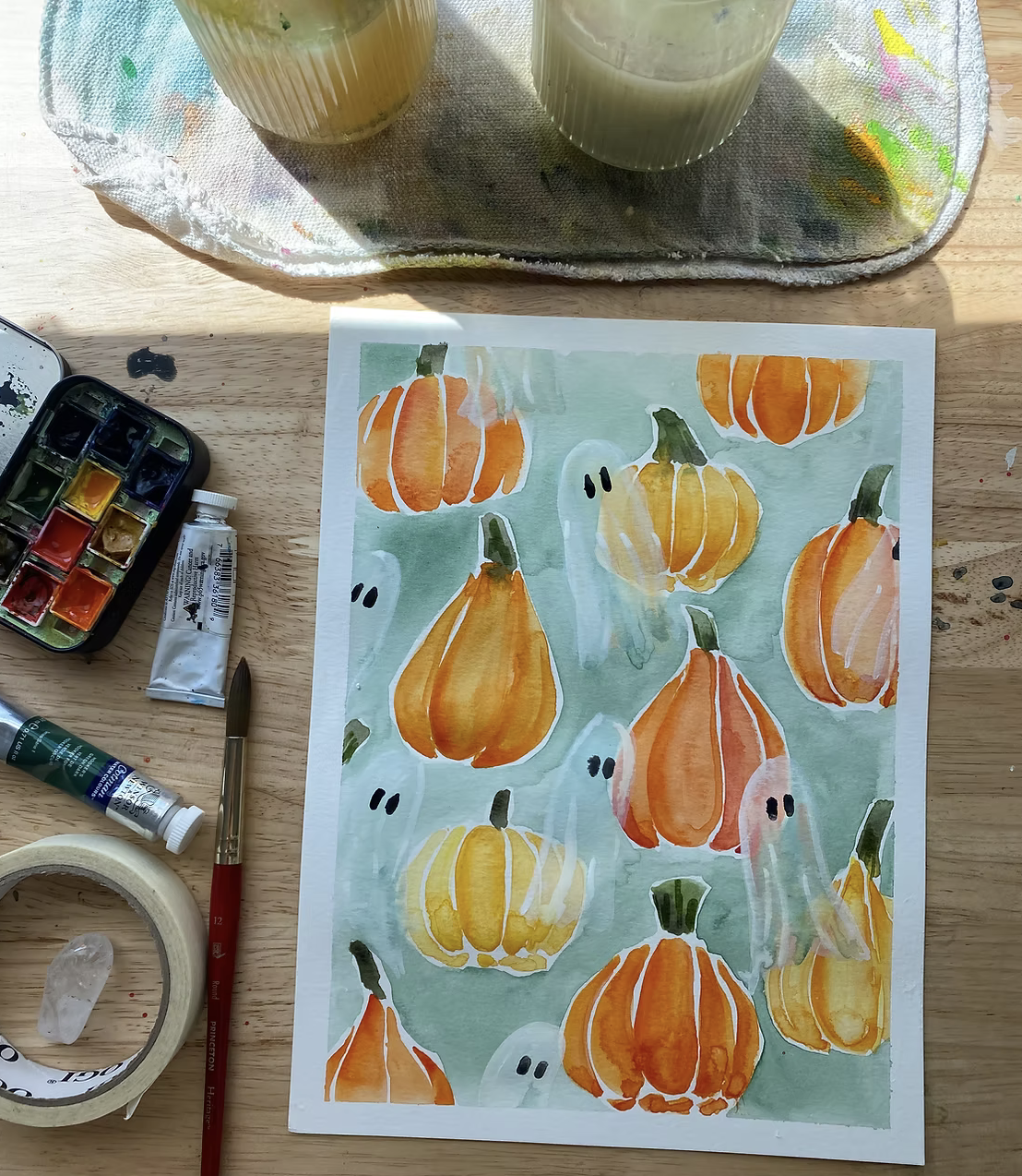 Pumpkins + Ghost Watercolor Paint + Sip at Proletariat